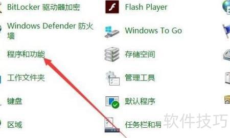 2、 打开Windows 10控制面板,选择程序和功能选项进入管理界面。