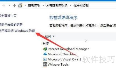 3、 在程序和功能界面中,选择左侧的启用或关闭Windows功能选项。