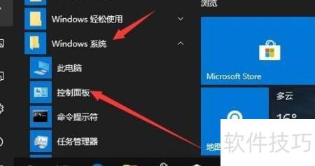 1、 在Windows10桌面,点击开始按钮,进入Windows系统,选择控制面板。
