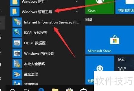 5、 返回Windows10桌面后,依次选择开始菜单、Windows管理工具,然后点击IIS进入相关界面。
