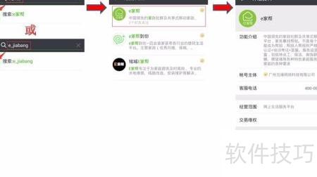 1、 微信搜索e家帮或e_jiabang,点击关注即可。