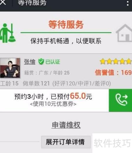5、 支付完成后进入等待服务状态,竞单成功的阿姨将在5分钟内联系您确认具体细节。