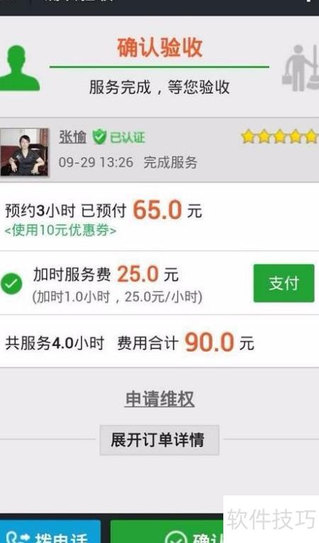 6、 服务完成后点击确认验收,费用将自动结算给阿姨。