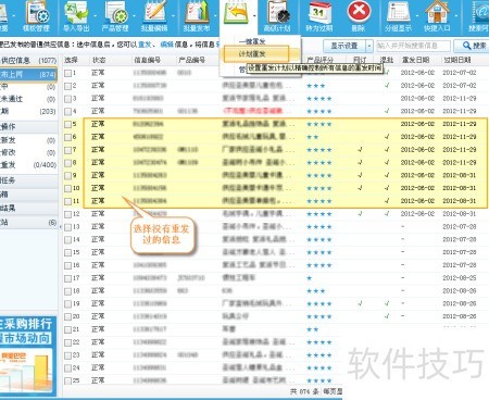2、 在左侧导航栏点击,查看已发布的信息,选择所需内容后,点击工具栏中的→,即可进入计划重发管理界面,具体操作所示。