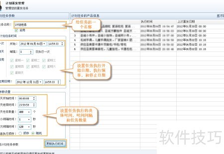 3、 在计划重发管理界面中配置任务时间与参数,确认无误后点击更新执行时间,再次核对信息,随后点击保存,提示保存成功,所示。