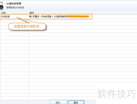 5、 完成任务重发设置后,点击工具栏的,进入计划任务管理界面,具体操作所示。
