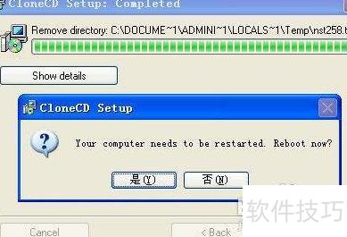 1、 通过百度搜索下载SlySoft CloneCD 5.3版本,完成下载后解压并开始安装。安装过程中出现提示要求重启时,选择否,暂不重启系统,继续后续操作即可。