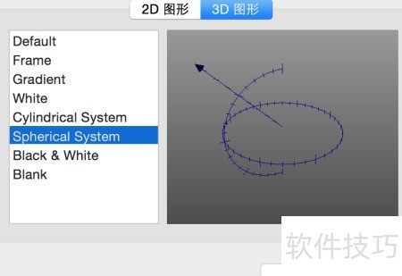 4、 进入三维图形设置,选择选取功能选项。