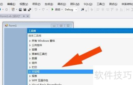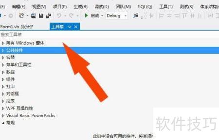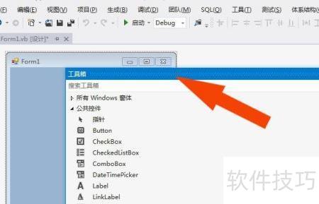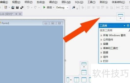 9、 在为程序窗口添加控件时,可直接打开工具箱,所示。通过这一操作步骤,即可掌握在Visual Studio中配置工具箱的方法,方便后续的界面设计与开发。