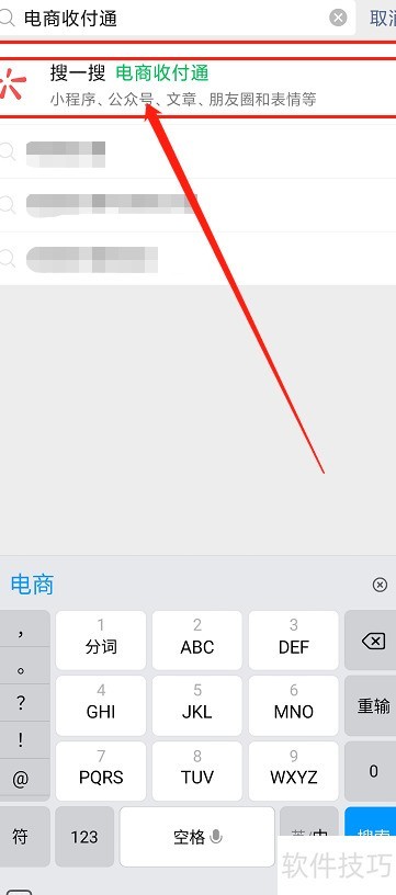 2、 在搜索框中输入电商收付通,然后点击搜一搜按钮。