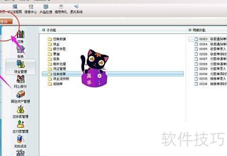 8、 请注意,往来结算子功能位于现金管理模块中倒数第三个位置。