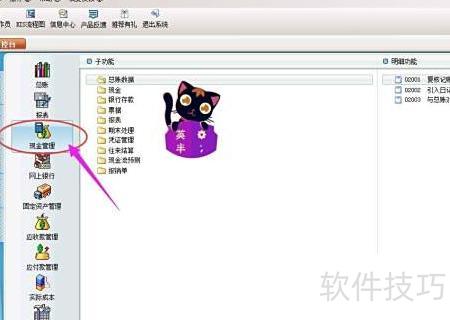 4、 进入财务会计模块后,选择其中的现金管理功能。