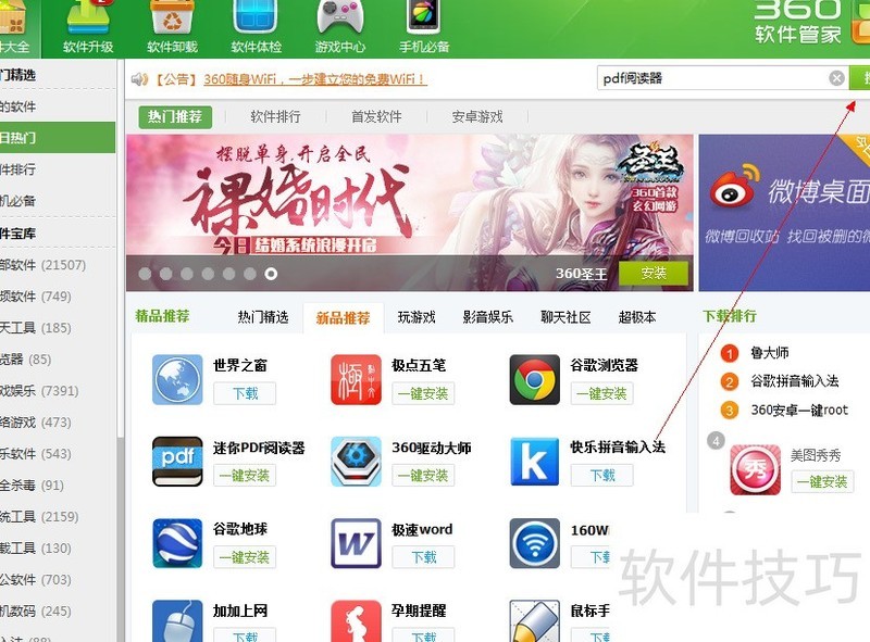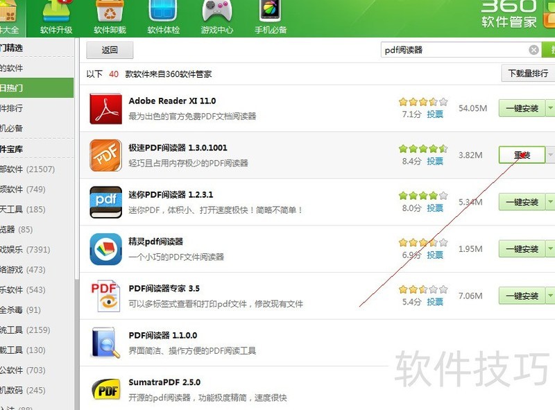 4、 市面上PDF阅读器众多,建议挑选一款内存占用小的,找到后直接点击一键安装即可。