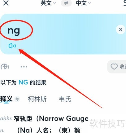 3、 在新页面点击ng旁的小喇叭图标,即可播放并学习其正确发音。