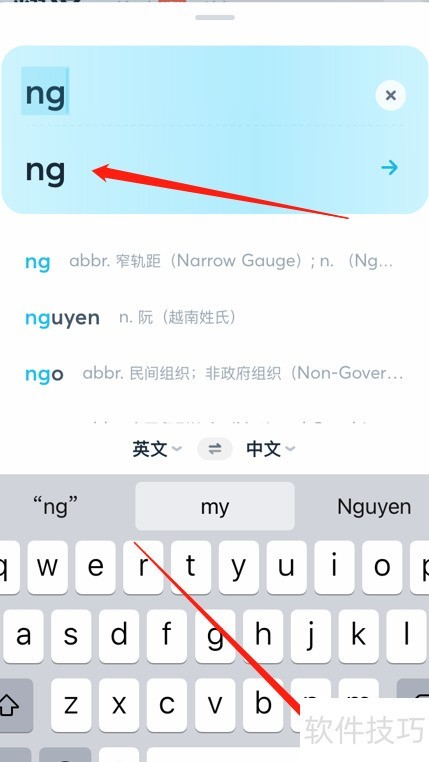 2、 在搜索栏输入ng,随后点击右下角的搜索图标进行查询。