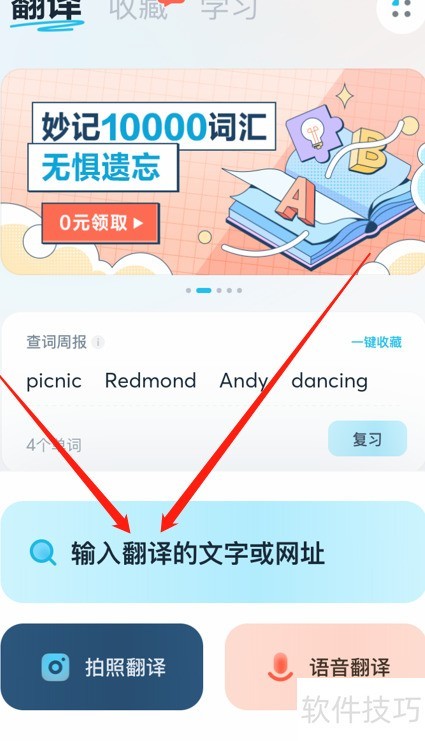 1、 打开手机中的有道翻译官,点击搜索功能即可。
