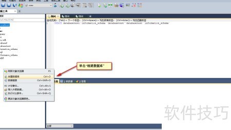1、 启动sqlyog后,在对象资源管理器空白区域右键单击,从弹出菜单中选择创建数据库选项即可。