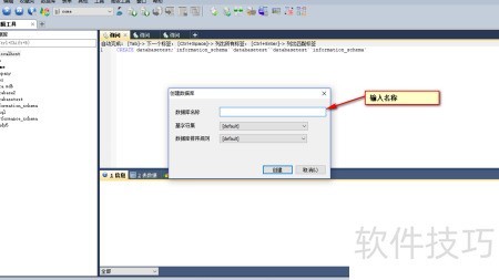 2、 在对话框中输入数据库名称。