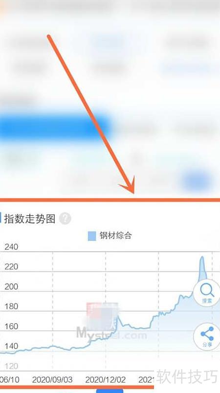 6、 在界面中查看钢材价格走势,掌握查询方法,直观了解市场行情变化。