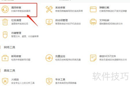 2、 进入安全工具后选择漏洞修复功能。