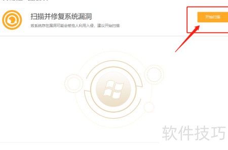 3、 进入漏洞修复页面,点击右上角开始扫描按钮进行检测与修复。