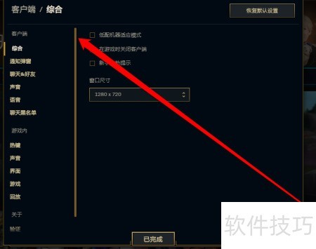 1、 启动LOL游戏后,进入设置界面进行操作。