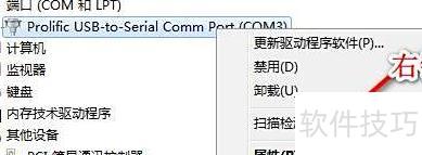 5、 在USB转串口设备上右键点击,选择属性选项。