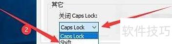 3、 在其他界面中,选择关闭Caps lock,然后在弹出的选项中点击Shift键。