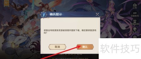 3、 进入确认页面后,点击确认按钮即可完成游戏客户端修复。