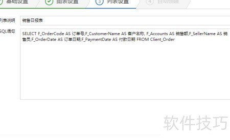 7、 完成图表与数据库连接后,接着连接列表与数据库,并编写相应的SQL语句。