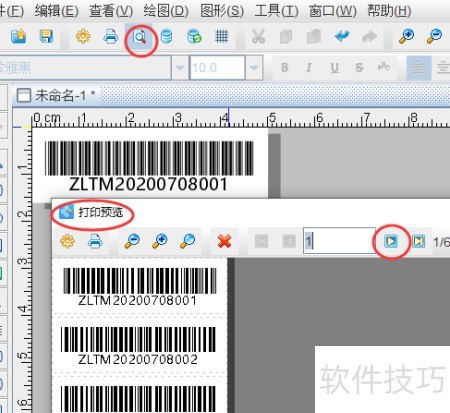 7、 设置完毕后,点击预览按钮,查看批量生成的Code39条码效果。
