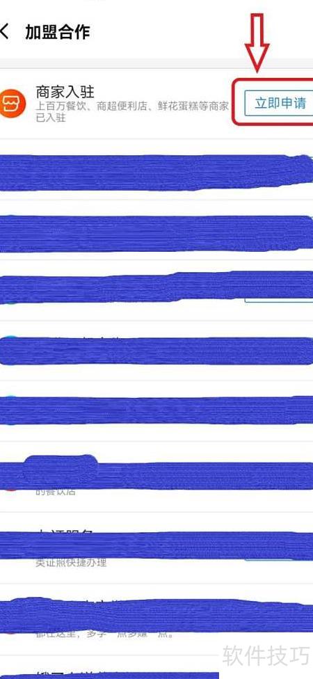2、 商家入驻后,点击立即申请即可加盟合作。