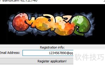 5、 安装完毕后,务必以管理员身份运行注册机,否则无法正常使用。在输入框中任意填写一个邮箱地址,随后点击Regester application!按钮即可完成注册操作。