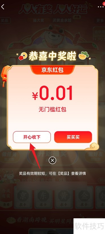 3、 第三步:弹窗中点击开心收下完成操作。