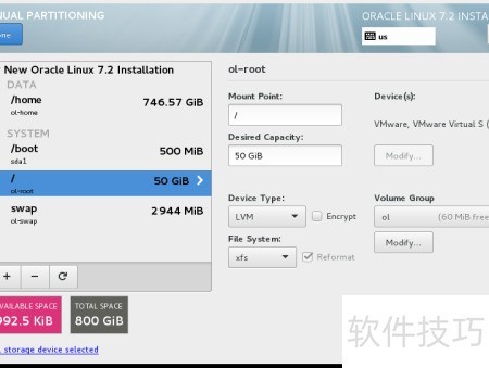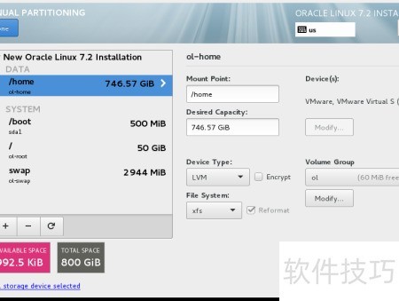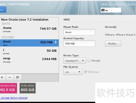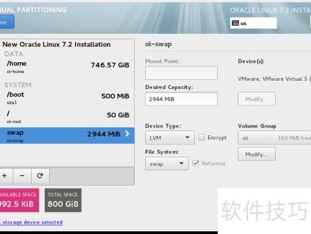 1、 新创建的分区将采用标准分区架构,由于未使用LVM,因此选择普通分区方式。