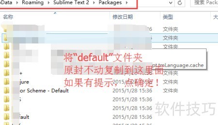 5、 将default文件夹完整复制到程序包指定位置,弹出提示时直接点击确定即可完成操作。