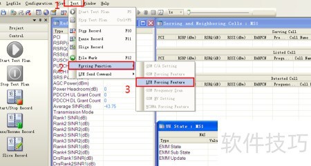 1、 进入PCI锁定状态,启动Probe软件(测试-强制功能-LTE强制特性)进行操作。