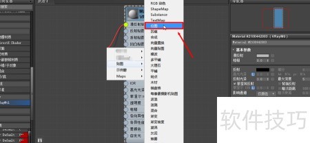 6、 在材质编辑面板中添加贴图,只需点击材质左侧的圆形接入端并拖动,即可弹出贴图选项,选择位图即可完成。同样方法也适用于其他材质的制作,具体操作所示。