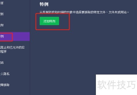 3、 进入常规选项,选择特例并点击添加,完成相关特例的设置。