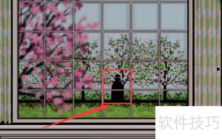3、 点击右侧进入下一场景,轻触窗帘则显现黑影。