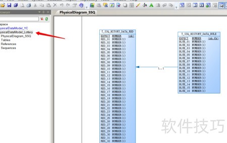 3、 使用PowerDesigner打开名为PhysicalDataModel_Lottery1的物理数据模型文件。