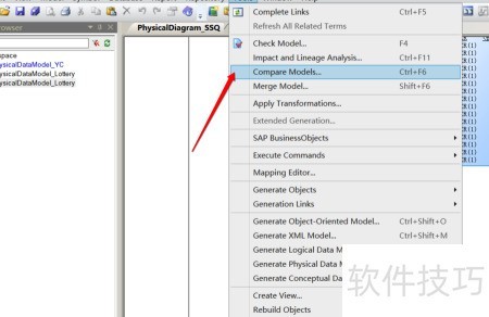 6、 由于PhysicalDataModel_Lottery1与PhysicalDataModel_Lottery2实际为同一模型,因此第二张图中显示的两个模型名称相同,未作区分。这种重复命名源于文件内容的一致性,导致在可视化时无法体现差异,仅从名称上无法判断其独立性。
