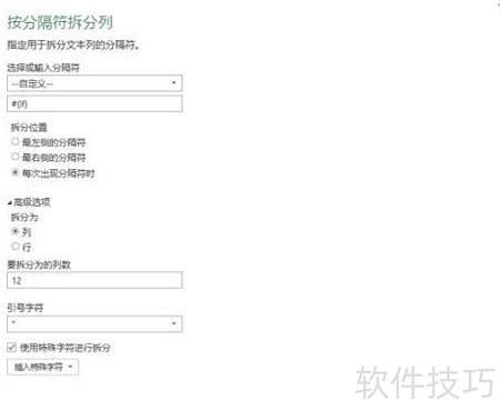 3、 在分隔符输入框中自动显示该不可见字符,用于数据拆分,支持按行或按列操作,默认设置为按列拆分,具体效果如下所示。