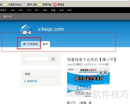 8、 保存后,网站首页菜单栏将显示新设置的谭小平微营销选项。