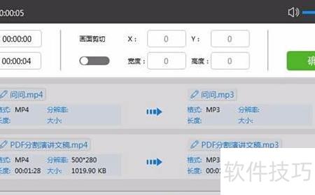 8、 将音频导入软件后,若无需提取完整内容,可点击文件右侧的剪切按钮,拖动指针选取所需片段。调整完毕后,确认起止位置无误,点击右下角按钮,即可完成指定区域音频的截取与保存,操作简便高效。