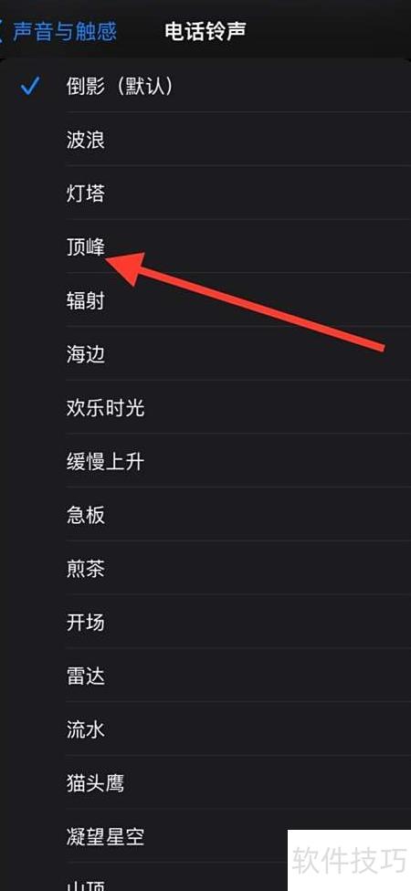 将iPhone来电铃声设置为顶峰,按步骤操作即可完成。