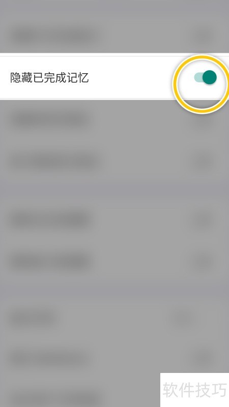 3、 在偏好设置中,开启隐藏已完成记忆的选项。