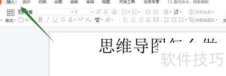1、 打开PPT,选择目标页面,点击插入菜单,添加思维导图。