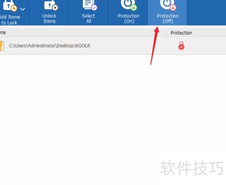 6、 选中相关记录后,点击工具栏中的protection off按钮即可解密文件,原本隐藏的文件夹将重新显示出来。