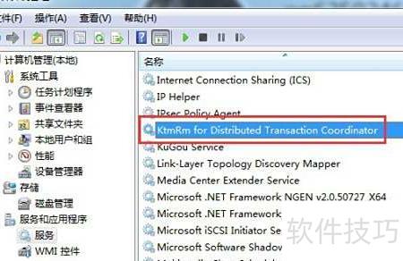 5、 在服务列表中定位到分布式事务协调器的KtmRm,然后进行双击操作。